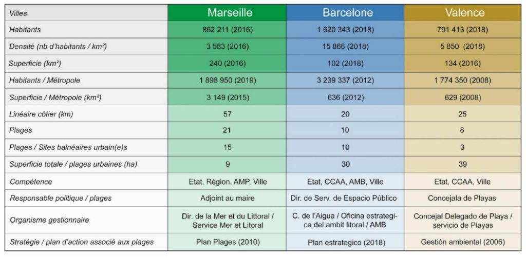 « En réaction au « tableau comparatif » diffusé lors des Rencontres, j’ai réalisé un recensement des plages sur le territoire de la Ville de Marseille (joint ici en fichier). Le tableau est décomposé en zones/quartiers avec repérage des plages où sont renseignées, la longueur en mètres linéaires, la surface en hectares, et pour ces deux postes le pourcentage par rapport aux valeurs totales.