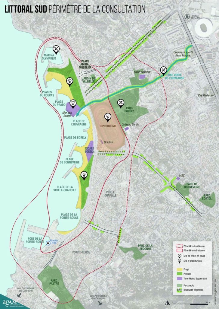 Hier jeudi 12 juin 2025, rendez-vous était pris dans les locaux marseillais de l’ADEUS (Agence D’Études Urbaines Territoriales Sociales), en visio également avec l’Agence TER, missionnées pour imaginer le plan d’aménagement du littoral sud, en fait les plages depuis le Stade Nautique Florence Arthaud jusqu’à la Pointe Rouge + la partie de ville en arrière des plages, comprenant Borély, l’hippodrome, Valbelle, les avenues Pompidou et Mendès France.