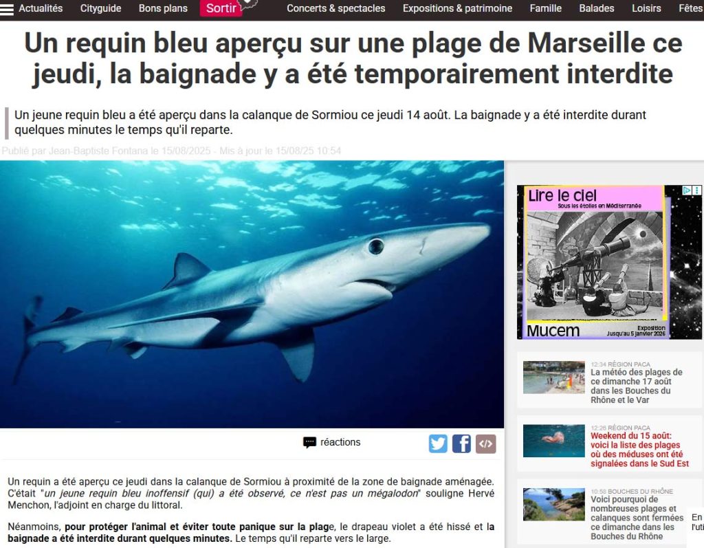 Ce jeudi 14 août, un bébé requin peau bleue a fait les gros titres des médias. Il a été aperçu à Sormiou, en zone de plage et les surveillants ont même fermé la baignade quelques instants.