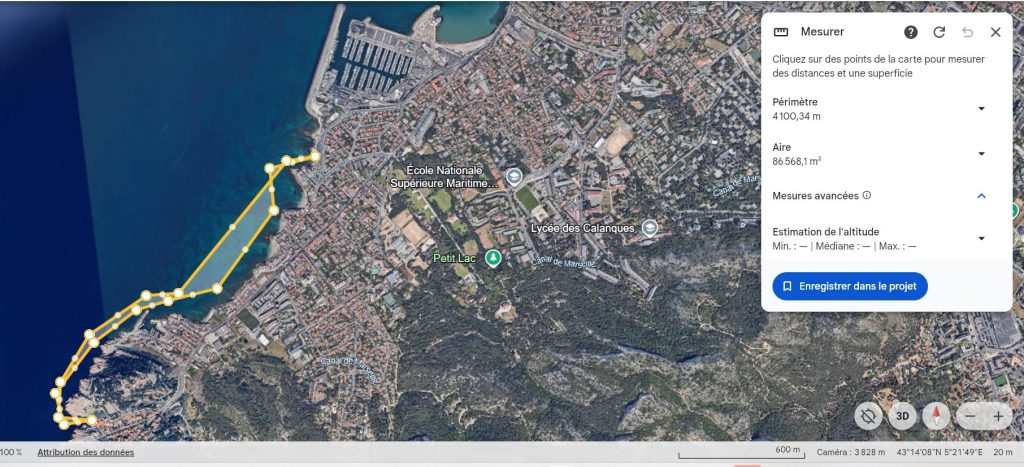 Ce parcours n’est possible que par mer belle, ou par vent d’Est. En effet, la mise à l’eau et la sortie de nage y sont trop dangereuses avec une petite houle. Deux autres dangers : dès la sortie du Bain des Dames, il y a un haut fond qu’il faut éviter même par petite houle – et aussi à surveiller absolument, à l’aller ET au retour : la passe du port de la Madrague de Montredon.