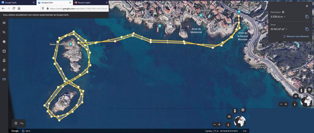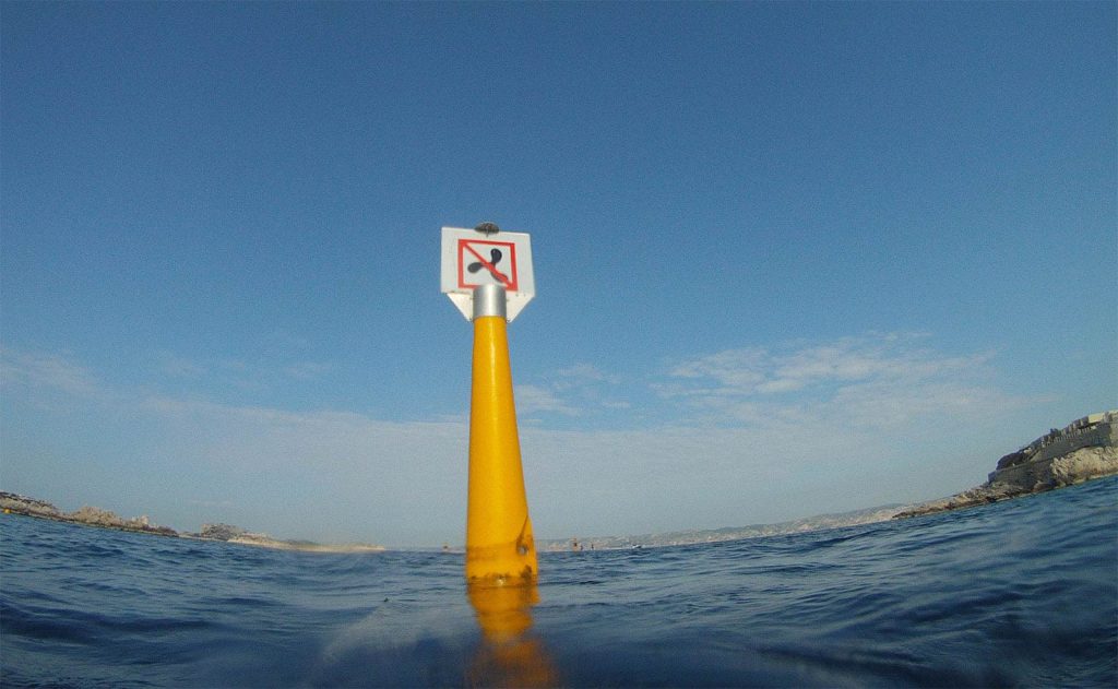 Depuis l’anse de la Fausse Monnaie, le parcours d’env 3 kms se déroule par de petits fonds aujourd’hui pas mal poissonneux : outre les habituels bancs d’oblades, saupes ou castagnoles, on aura vu 1 belle dorade, des poulpes, un beau loup d’env 2 kg, une totenne (calamar) d’1 kg, des gros sars et des pointus* mastocks. Une partie du parcours entre les îlots et la côte est agréablement balisée interdite à la navigation à moteur !