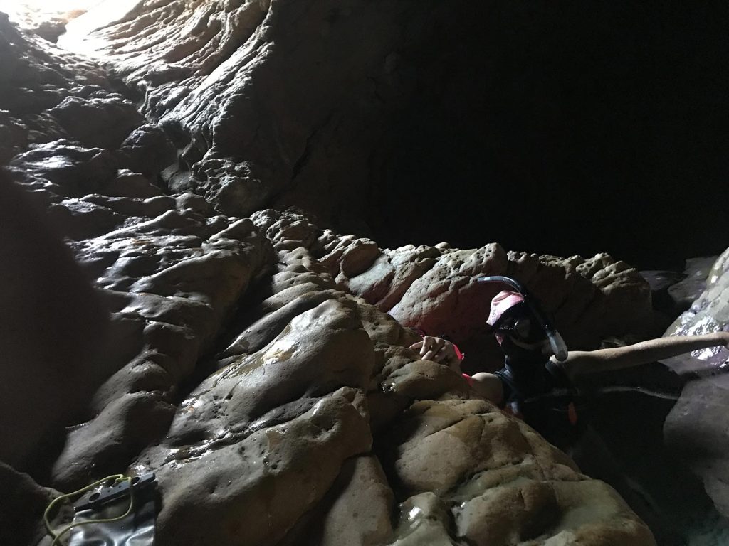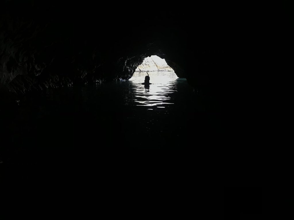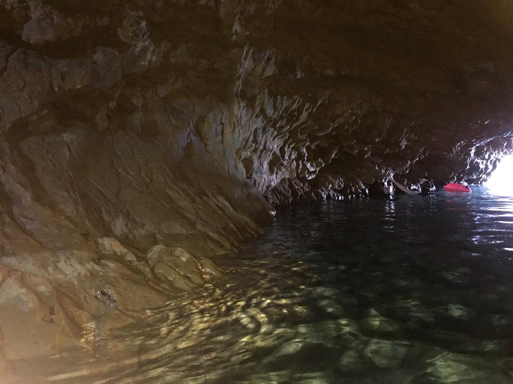 La grotte de Méjean est assez longue une dizaine de mètres, facilement accessible de terre depuis le chemin des douaniers en direction de l’Erevine et par la mer, au sortir de la calanque. Belles couleurs bleutées, ou vert lagon selon l’orientation, et le graal pour les swim-runners !