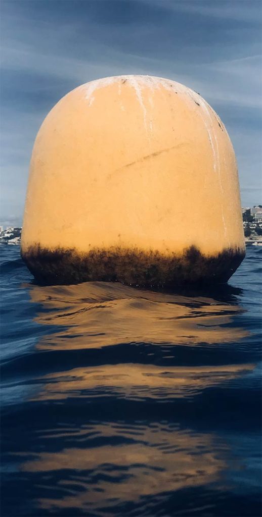 Près des plages, des ports, des agglomérations, des sites touristiques, le littoral est parsemé de bouées jaunes, tantôt rondes, cylindriques, coniques. Chaque bouée a sa signification, comme les panneaux routiers, elles font office de signalisation à l’attention des usagers de la mer : baigneurs, véliplanchistes, plaisanciers à voile et à moteur, pêcheurs pro et amateurs, plongeurs et nageurs en eau libre…